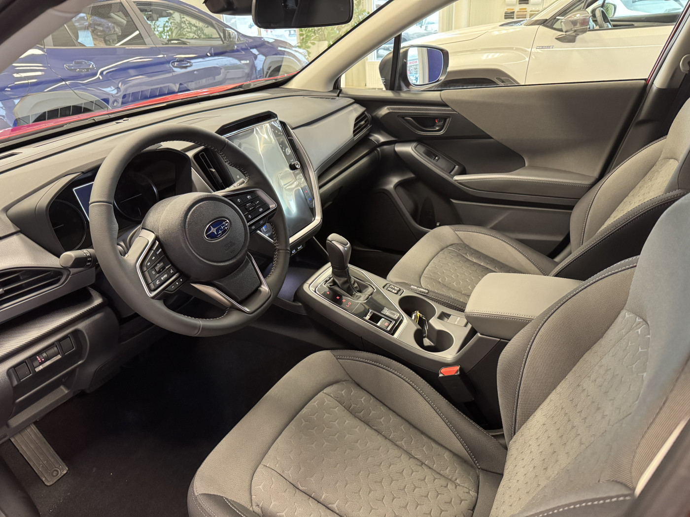 LED přední světlomety s automatickým nastavením sklonu a spuštěním v šeru. Výsuvné ostřikovače světlometů. LED přední mlhová světla. LED zadní kombinovaná světla. LED zadní mlhová světla. ElektrickyVnější výbava: LED přední světlomety s automatickým nastavením sklonu a spuštěním v šeru. Výsuvné ostřikovače světlometů. LED přední mlhová světla. LED zadní kombinovaná světla. LED zadní mlhová světla. Elektricky sklopná vnější zpětná zrcátka. Zatmavená skla v zadních dveřích a 5. dveří. Variabilní cyklovač stěračů. Dešťový senzor. Zadní stěrač s cyklovačem. 18“ broušená kola z lehké slitiny. Boční ochranné prvky s funkčními vzduchovými otvory. Střešní ližiny. Střešní spoiler. Anténa ve tvaru ploutve. Sedadla / Čalounění: Kožený volant se stříbrným obšitím. Kožená hlavice řadící páky. Kožený volant a hlavice volící páky převodovky. Vyhřívání předních sedadel. Elektrické v 10 směrech nastavitelné sedadlo řidiče s bederní opěrkou. Elektrické v 8 směrech nastavitelné sedadlo spolujezdce. Zadní sedadla dělená a sklopná v poměru 60/40. Odkládací kapsa na opěradle spolujezdce. Komfort / Pohodlí: Elektrické ovládání oken, okna řidiče a spolujezdce s automatikou. Centrální zamykání s dálkovým ovládáním. Keyless Access-bezklíčkové senzorové ovládání centrálního zamykaní vozu a startování. Přístup do vozu pomocí kódu PIN. Dešťový a světelný senzor. Automatická funkce blikačů pro změnu jízdního pruhu (trojblik). Čtecí lampičky a osvětlení zavazadlového prostoru. Sluneční clony s integrovanými kosmetickými zrcátky s podsvícením. Odkládací schránka na středové konzoli. Přední držáky na 2 nápoje. Středová loketní opěrka na zadních sedadlech, integrované držáky na 2 nápoje. Schránky na všech dveřích s držáky na PET láhev. Zásuvka 12V ve středové konzoli. Upevňovací oka (4) a háčky (2) v zavazadlovém prostoru. Kryt zavazadlového prostoru-roleta. Odkládací schránky pod podlahou v zavazadlovém prostoru. Topení / Klimatizace: Duální automatická klimatizace s prahovým filtrem. Výdechy ventilace na podlaze pro cestující vzadu. Hlasové ovládání klimatizace. Ukazatel venkovní teploty. Rozmrazovač stěračů předního okna. Elektrické vyhřívání vnějších zrcátek. Elektricky vyhřívané zadní okno s časovačem. Audio a Navigace: 11,6“ Full HD displej, audiosystém, 6 reproduktorů. Bezdrátový Apple CarPlay/Android Auto Infotaimment systém. Ovládání audia na volantu. Bluetooth handsfree systém. Dvojice USB portů (typ A a C) a jeden audio vstup AUX (ve středovém panelu). Dvojice USB portů (typ A a C) v zadní části středové konzoly (pouze pro nabíjení). Přístroje / Ovládání: Multifunkční displej. V obou osách nastavitelný volant. Adaptivní tempomat. Řízení a elektronické systémy: 2X-Mode – systém jízdního režimu-dvoumódový Snow/Dirt a Deep Snow/Mud. SI-DRIVE-systém režimů motoru a převodovky (SUBARU Inteligent Drive). Hill Descent Control – systém po sjíždění svahu. VDC systém – kontrola stability a trakce vozu s možností vypnutí. Elektronická parkovací brzda s funkcí Auto Vehicle Hold-systém pro stání bez stisknutého pedálu brzdy. Auto START/STOP Systém s možností deaktivace (ISS). Bezpečnost: SRS přední airbagy. SRS boční airbagy (pro řidiče a spolujezdce). SRS hlavové airbagy. SRS kolenní airbag řidiče. Airbag v sedáku vpředu (spolujezdec). Středový airbag mezi sedadly. Aktivní natáčecí světlomety Steering Responsive Headlights (SRH). SRVD (SUBARU Rear Vehicle Detection)-systém pro detekci vozů v mrtvém úhlu. LED přídavná odbočovací světla. HBA (High Beam Assist) systém – automatické přepínání mezi dálkovými a potkávacími světly. Automatické brždění při přiblížení se k překážce při couvání RAB (Reverse Automatic Braking). Automatické samostmívací zpětné zrcátko. Zadní parkovací kamera. Systém monitorování řidiče Driver Monitoring Systém (DMS). e- Call (systém tísňového volání).Ukazatel nezapnutých bezpečnostních pásů. Výškově nastavitelné bezpečnostní pásy vpředu. 4-kanálový protiblokovací systém ABS s elektrickým rozdělením brzdné síly EBD. Brzdový asistent. Brake Override - systém ochrany proti neúmyslnému zrychlování. Uchycení dětské sedačky ISO-FIX. Dětská pojistka zadních dveří (po obou stranách). Imobilizér. Prodloužená záruka na 5 let / 200.000 km a asistenční služby na 5 let v hodnotě 19.900,- Kč ZDARMAvíce výbavy |